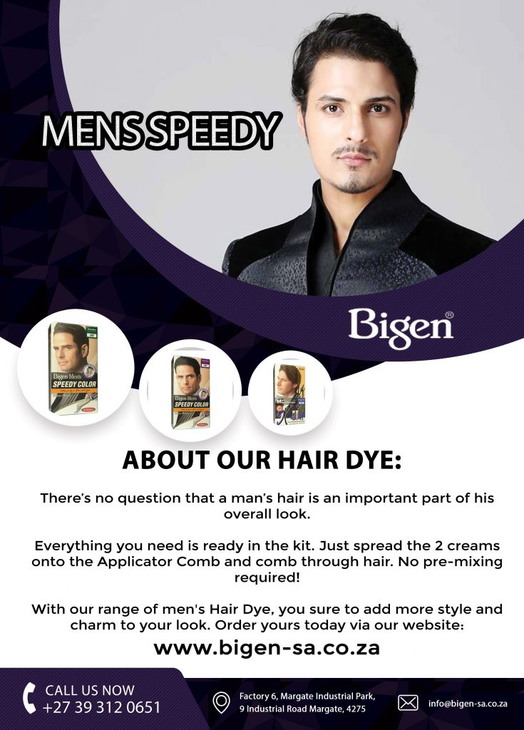 With our range of men’s Hair Dye, you are sure to add more style and charm to your look. Order yours today via our website www.bigen-sa.co.za or call us on 039 312 0651.